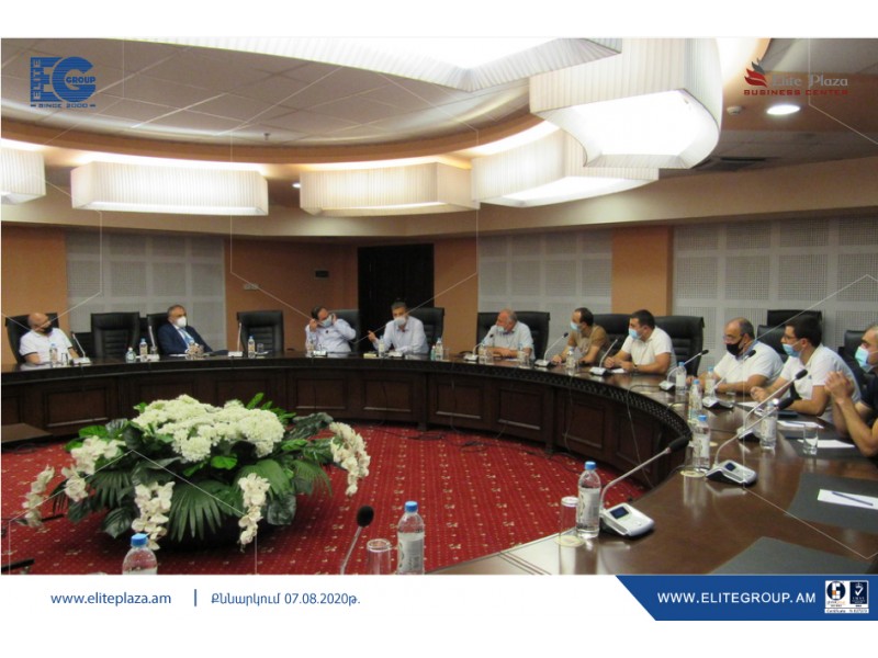 August 7, 2020 Armen Mkoyan, founding chairman of “Elite Group” CJSC, member of the Union of Producers and Entrepreneurs of Armenia, together with a group of union members, took part in a working discussion organized by the members of the union in the class A business center Elite Plaza.